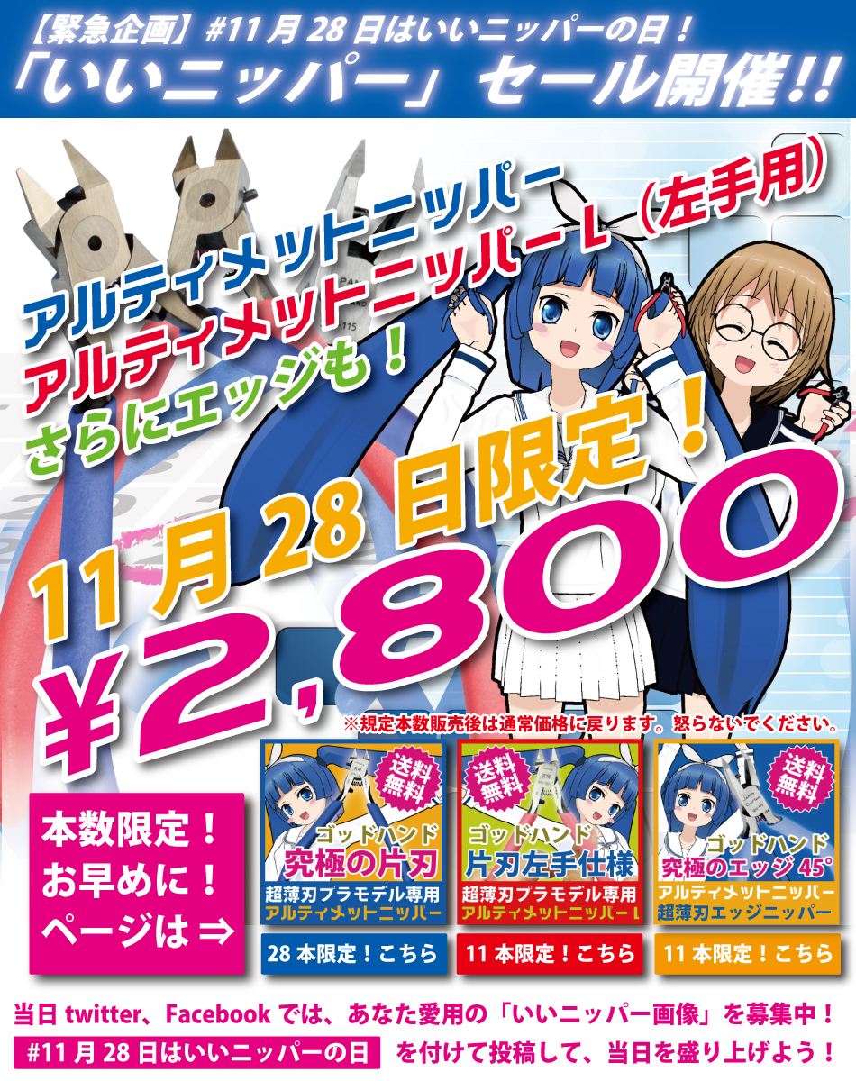 11月28日は『いいニッパーの日』作業工具専門店ゴッドハンド「アルティメットニッパー」が当日限定で割引販売