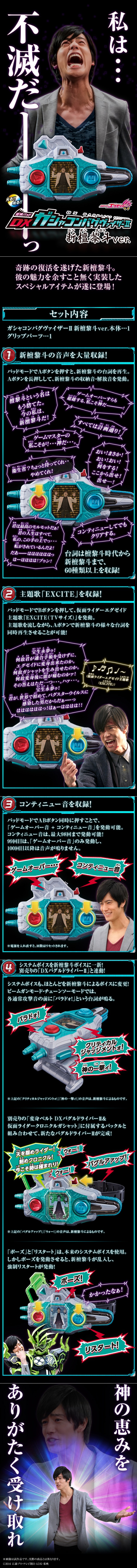 またAボタンを押すことで檀黎斗や新檀黎斗の台詞を60種以上再生することが可能。