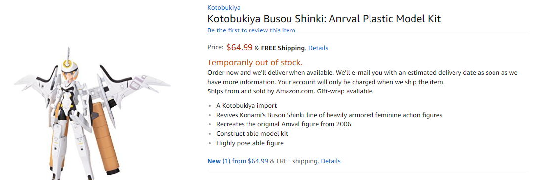 【武装神姫】コトブキヤ「アーンヴァル」プラキット 米アマで予約開始!日本も近日?