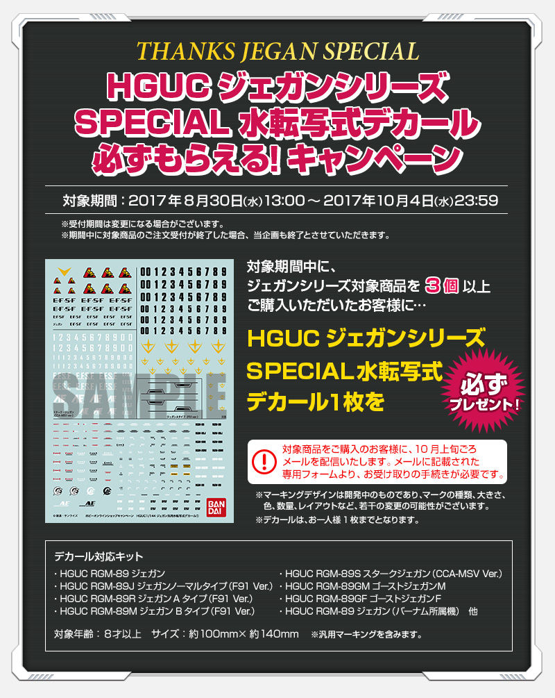 ■THANKS JEGAN SPECIAL~SPECIAL水転写式デカールが必ずもらえる!~