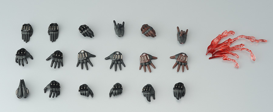 “アイサツ”、“カラテ”等劇中シーンを再現する多彩な手首パーツと、アクション用になびいたマフラーが付属。