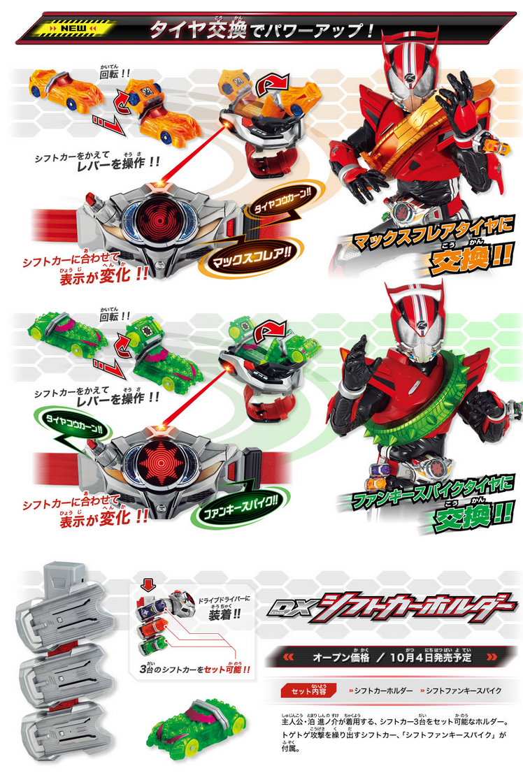 『仮面ライダー ドライブ』で活躍する車モチーフのアイテムです。