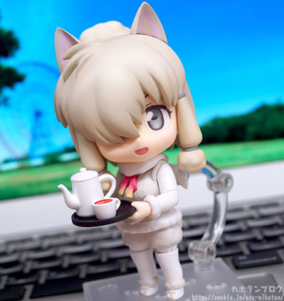 カフェでお茶をふるまうようなポーズが再現可能です。別売りの「ねんどろいど サーバル」「ねんどろいど かばん」で