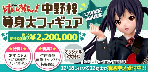 ■けいおん! 中野梓 等身大フィギュア 発売決定
