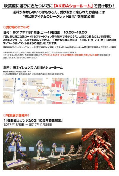 【ジャンプ展】S.H.フィギュアーツ「両津勘吉」「キン肉マン(王位争奪編Ver.)」限定カラー AKIBAショールーム受け取りで販売開始 2017年11月13日 10:34 ロボ魂/フィギュアーツS.H.Figuarts限定キン肉マンプレバン|CM() ■AKIBAショールーム受け取りで販売開始 S.H.Figuarts 両津勘吉 JUMP 50th ANNIVERSARY EDITION ~I~※AKIBAショールーム受け取り(プレバン) 価格 5,400円(税込) 連載初期の両さんがアクションフィギュアになって登場!! 「伝説の始まり」を君の手で遊び尽くせ! S.H.Figuarts キン肉マン(王位争奪編Ver.)ORIGINAL COLOR EDITION※AKIBAショールーム受け取り(プレバン) 価格 5,400円(税込) 王位争奪編衣装のキン肉マンがジャンプ展を記念して特別カラーで登場! フェイスフラッシュも再現可能! 聖闘士聖衣神話 APPENDIX ペガサスクロスオブジェ JUMP 50th ANNIVERSARY EDITION(GOLD ver.)※AKIBAショールーム受け取り(プレバン) 価格 1,500円(税込) ペガサスクロスオブジェがブロンズメッキ、ゴールドメッキの2バージョンで登場! ジャンプ展VOL.1 ロゴのプリントされた台座とともに飾ろう! 聖闘士聖衣神話 APPENDIX ペガサスクロスオブジェ JUMP 50th ANNIVERSARY EDITION※AKIBAショールーム受け取り(プレバン) 価格 1,500円(税込) ペガサスクロスオブジェがブロンズメッキ、ゴールドメッキの2バージョンで登場! ジャンプ展VOL.1 ロゴのプリントされた台座とともに飾ろう!