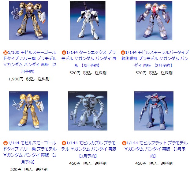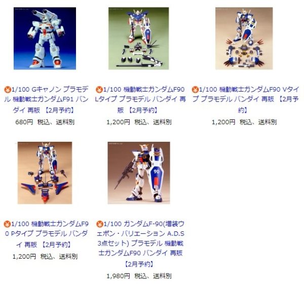 ∀ガンダム、ガンダムX、ガンダムF90&91系 2月、3月再販決定