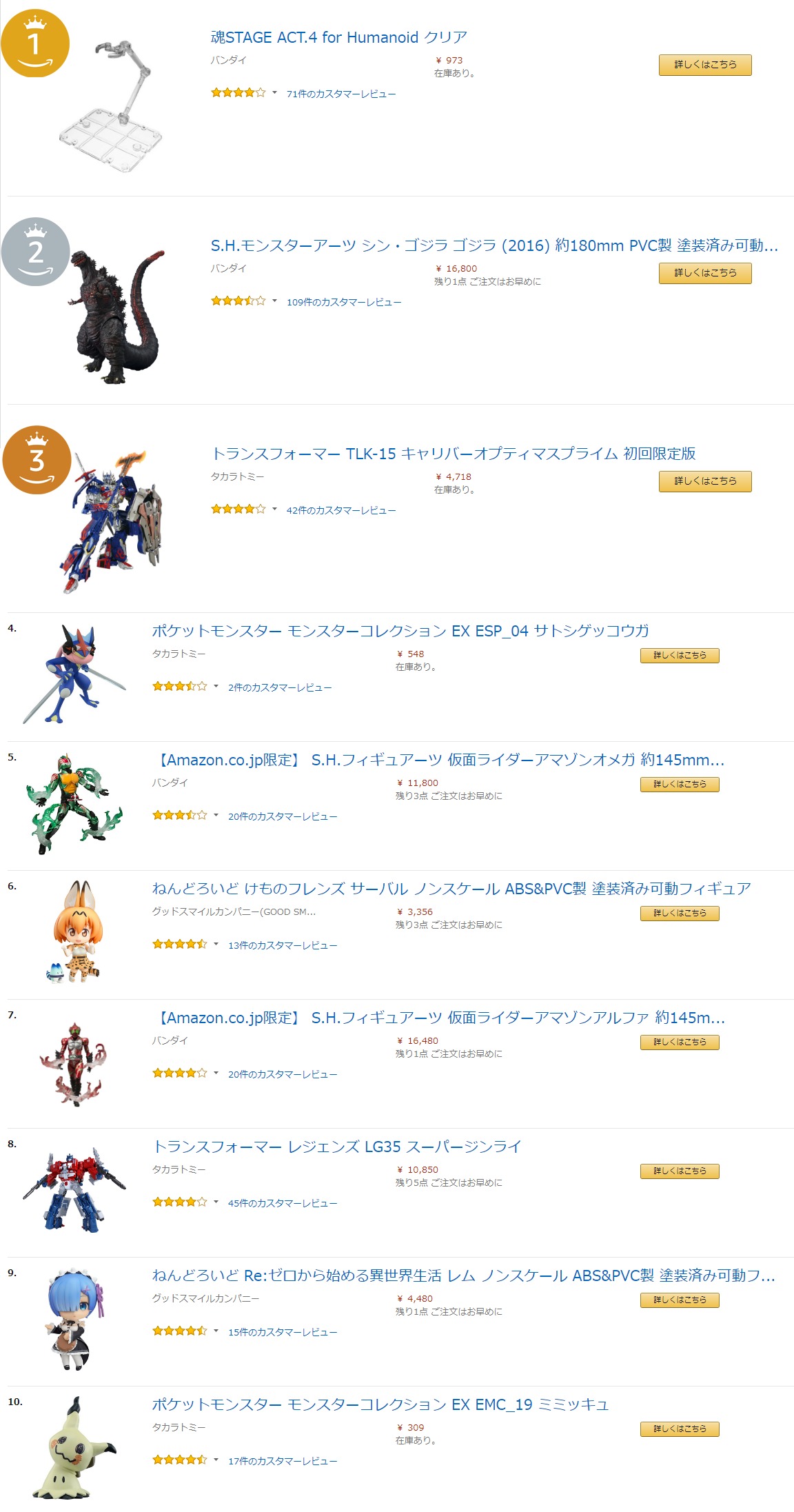 【フィギュア&プラモ】「Amazonランキング大賞2017」発表!