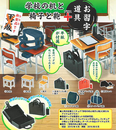 人気の定番ミニチュア「学校の机と椅子と鞄」に新たなアイテムがプラス!