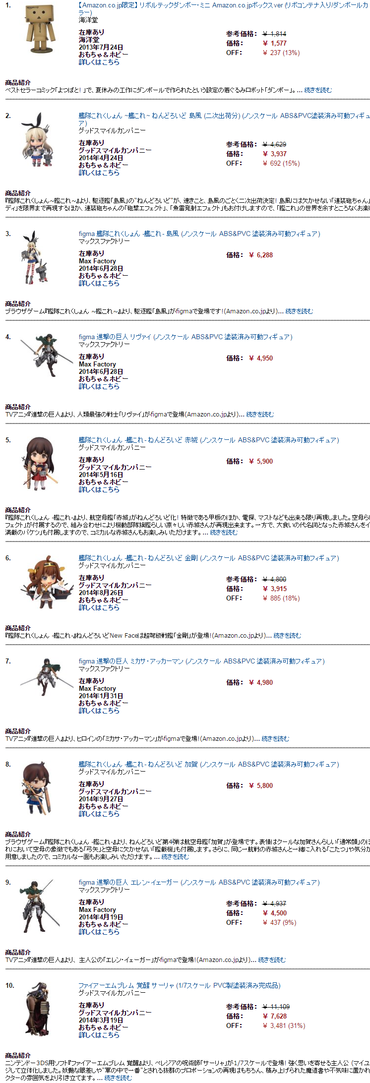 2014年Amazonホビーランキング