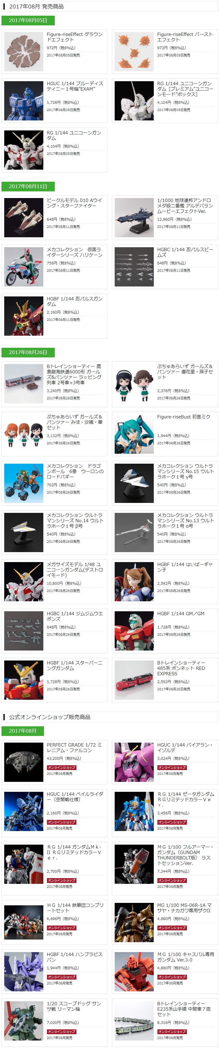 TOP > ロボット > ガンダム > 2017年発売「ガンプラ」「ほかバンダイホビーまとめ