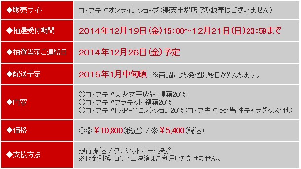 【福袋】「2015年コトブキヤ新春福箱」詳細公開、19日金曜抽選受付開始