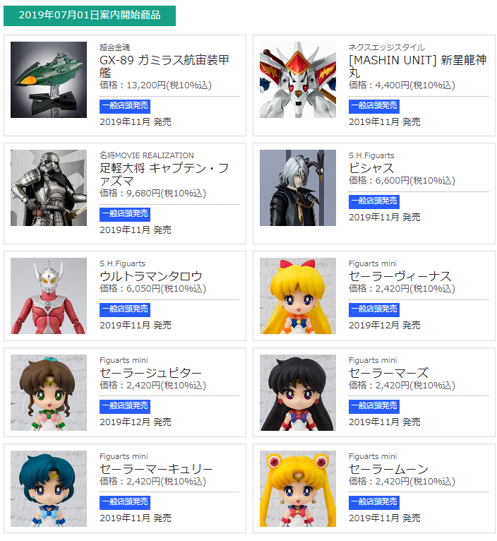 【本日16時予約開始】S.H.フィギュアーツ「ビシャス」「ウルトラマンタロウ」ほか商品情報公開【バンダイ11月一般】 2019年07月01日 00:17 ウルトラマンロボットロボ魂/フィギュアーツウルトラマンS.H.Figuarts コメ 【本日16時予約開始】 この記事の続きを読む