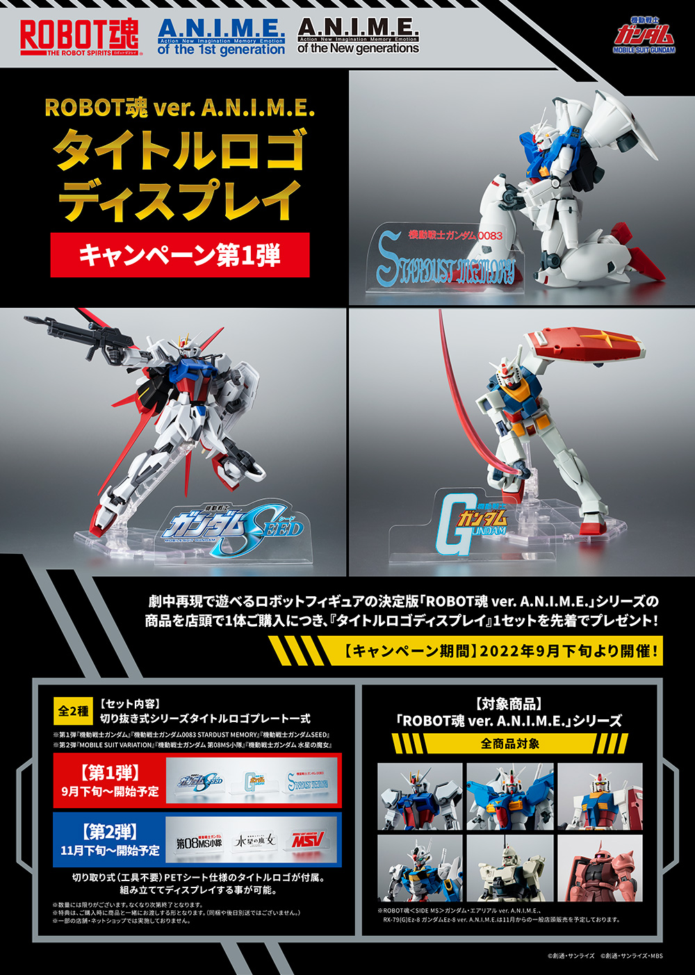 【機動戦士ガンダム】「ROBOT魂 ver. A.N.I.M.E. タイトルロゴディスプレイ キャンペーン」実施決定!対象商品購入でタイトルロゴPETシートが貰える