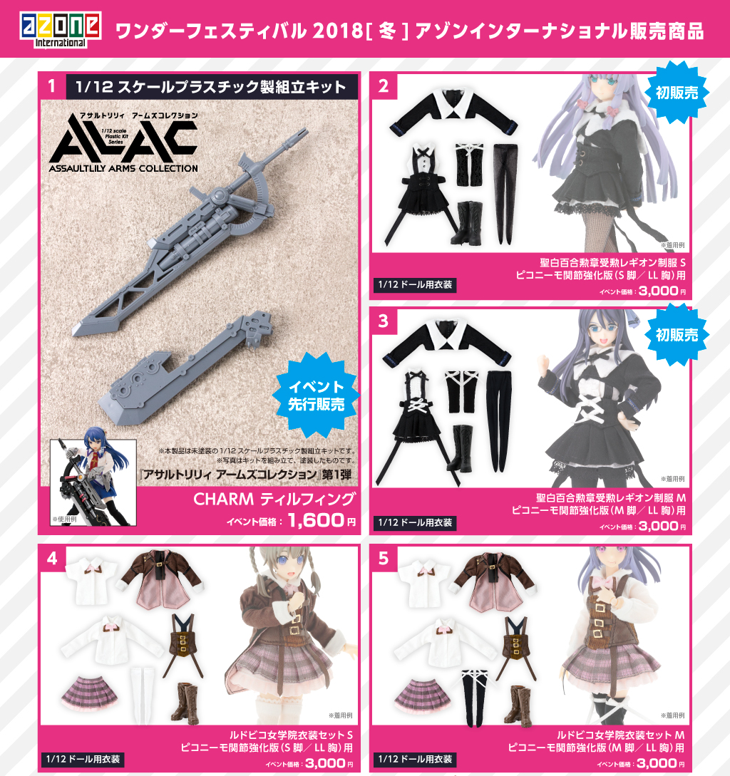 【アゾン】ワンフェス物販情報公開、「アサルトリリィ」限定品や先行販売商品など 2018年02月15日 23:05 可動フィギュアアゾンアサルトリリィワンフェス コメ ワンフェス物販 この記事の続きを読む