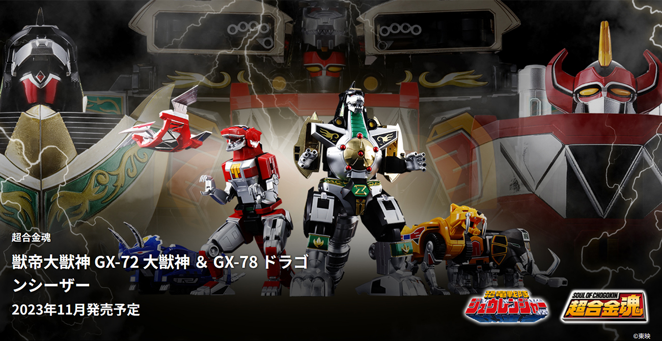 【恐竜戦隊ジュウレンジャー】超合金魂「獣帝大獣神 GX-72 大獣神 & GX-78 ドラゴンシーザー」本日16時より一般予約開始 2023年06月08日 09:38 戦隊ロボットロボ魂/フィギュアーツ超合金魂恐竜戦隊ジュウレンジャー コメ 商品情報公開 この記事の続きを読む