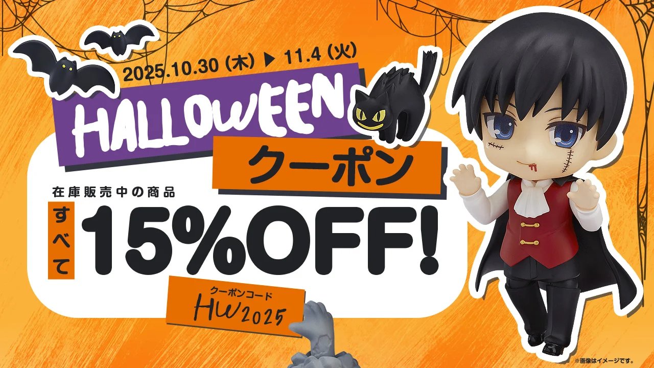 【フィギュアほか】グッスマ公式ショップ限定「ハロウィンクーポン」配布、「在庫販売中」商品対象で『15%OFF』 2025年10月30日 15:07 News美少女ねんどろいどセールグッスマ 75コメ 「15%OFFクーポン」 この記事の続きを読む