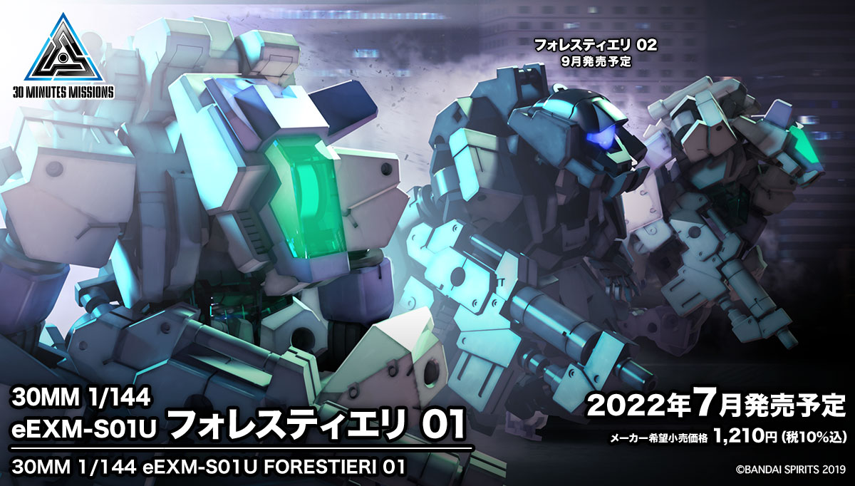 【30MM】「eEXM-S01U フォレスティエリ 01」「eEXM-S02M フォレスティエリ 02」「オプションパーツセット9(大型ブースターユニット)」プラモデル 発売決定【追記】 2022年03月15日 12:38 ロボットプラモ30MM コメ 30MM新作 この記事の続きを読む