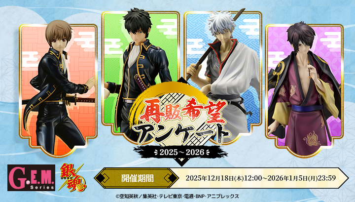 【銀魂】「G.E.M.シリーズ『銀魂』再販希望アンケート」本日受付開始 2025年12月18日 13:21 News男・美少年再販メガハウス銀魂G.E.M.シリーズアンケートスケール コメ この記事の続きを読む
